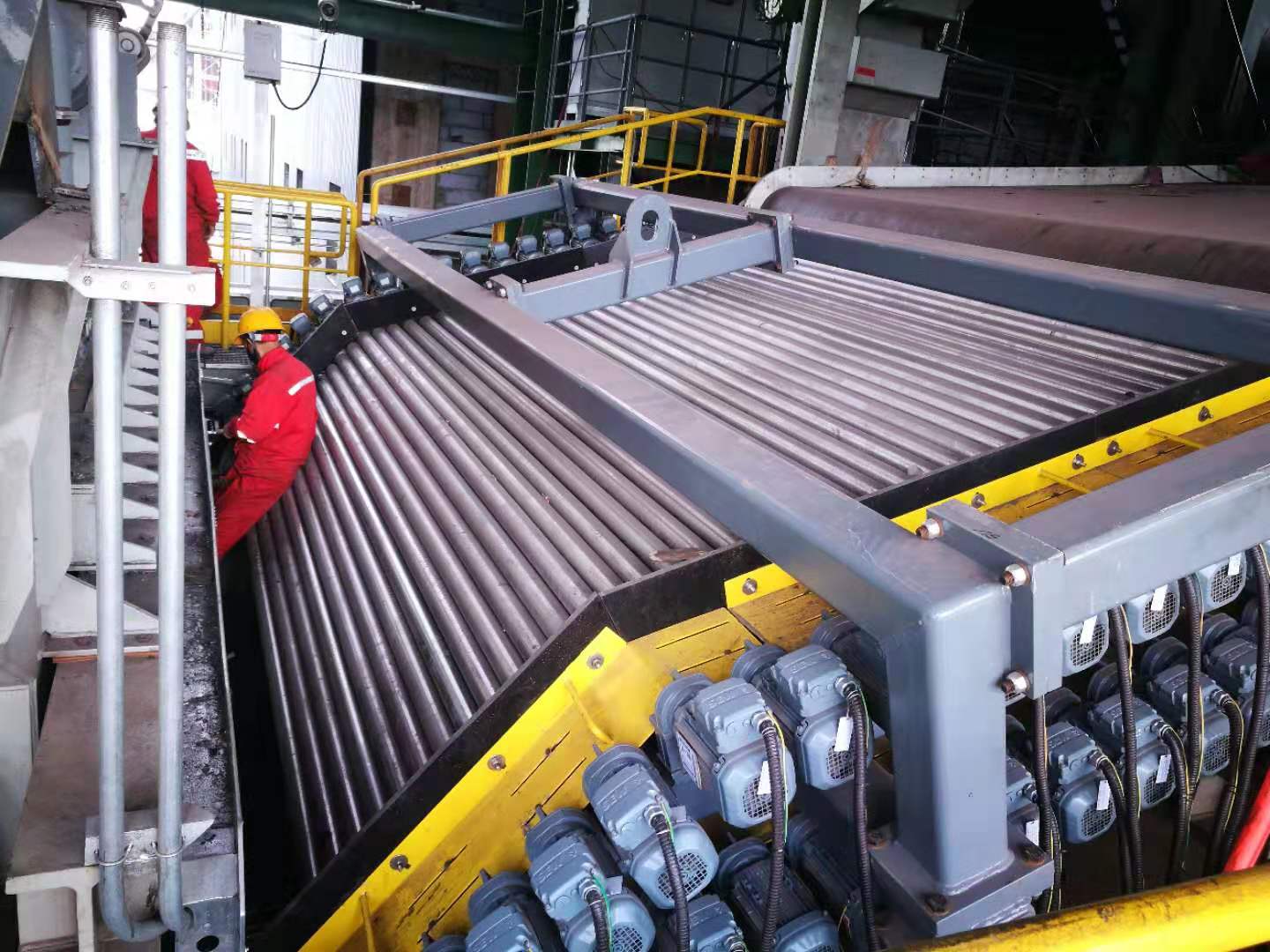 1)4m臺車僅采用φ85mm的輥?zhàn)樱侀g凹槽淺,篩分效果好;2)輥?zhàn)硬捎秒x心鑄造,撓度小、不易變形,生球合格率高;3)輥?zhàn)颖砻嬖O(shè)置涂層,不易粘料、使用壽命長;4)采用新型側(cè)擋板,不會在輥?zhàn)颖砻娈a(chǎn)生拉溝,輥?zhàn)邮褂脡勖L。