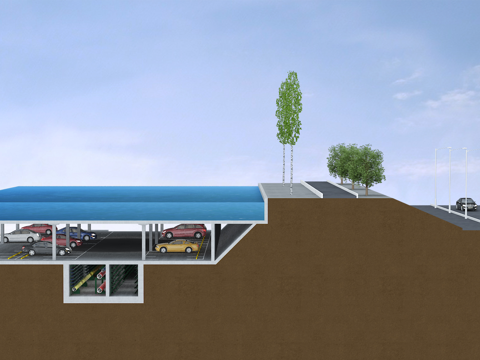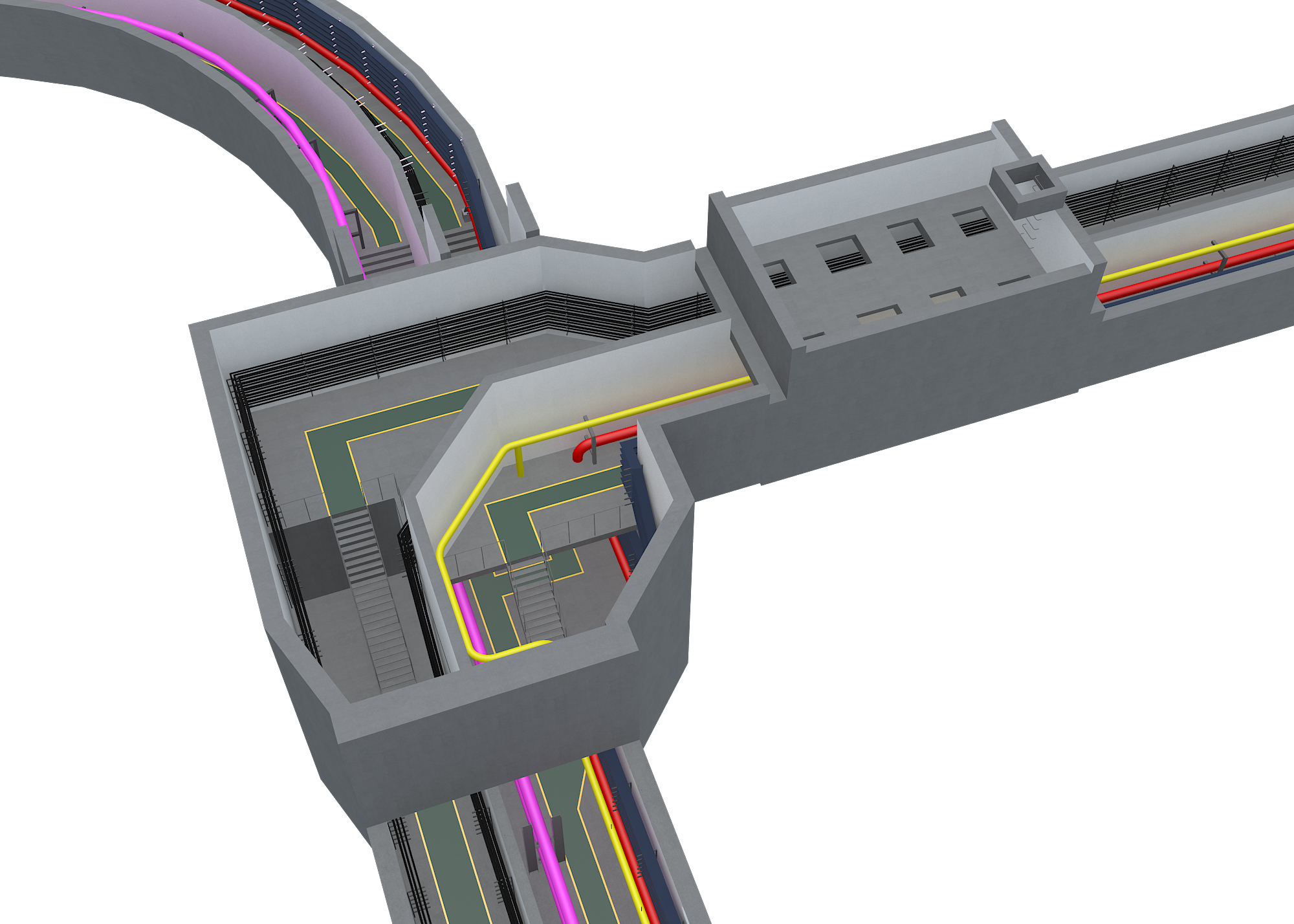 位于首鋼北京產(chǎn)業(yè)園區(qū)秀池底部停車場(chǎng)的下方,全長(zhǎng)780米,綜合管廊斷面尺寸:7.0m*3.7m,雙艙室結(jié)構(gòu),分為綜合艙和強(qiáng)電艙,容納熱力管、供水管、再生水管、電力電纜及電信管道等市政管線。
