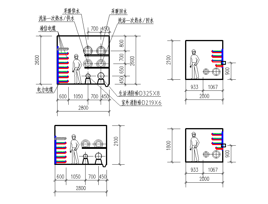 4476工程地下綜合管廊 管廊總長(zhǎng)為3.67km,斷面尺寸4.2mX2.6m,內(nèi)含采暖熱水管、洗浴熱水管、生活消防給水、室外消防給水、電力電纜及電信電纜等管線
