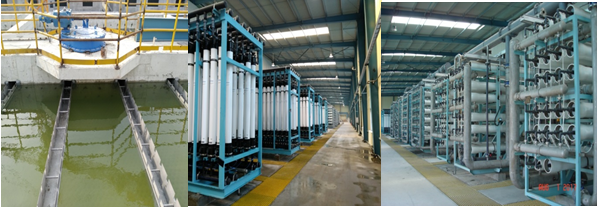 1)鋼廠綜合污水處理技術(shù):采用具有混凝、澄清、污泥濃縮、泥渣回流等綜合功能的一體化構(gòu)筑物,特殊的混凝、過濾池型結(jié)構(gòu),表面負(fù)荷高、過濾速度快,在高效澄清池后增設(shè)改進(jìn)型的后混凝及pH調(diào)節(jié)池,自動化程度高、處理效果好、運(yùn)行成本低;同時(shí)具有多年中水深度處理回用的工程經(jīng)驗(yàn),采用預(yù)處理+超濾+多級反滲透工藝,將中水最大限度的處理回用,剩余少量的廢水沖渣等低端用戶消耗。最終達(dá)到污水資源化、減量化、零排放。