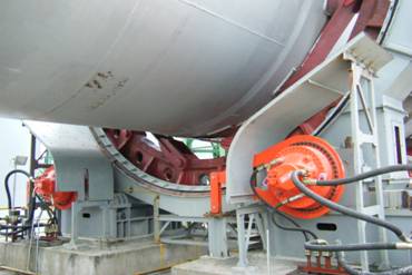 4) 回轉窯液壓擋輪技術——自動調整回轉窯窯位,延長托輪使用壽命